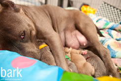 Lesley rescued Jasmine from the shelter and brought her the vet's office to be spayed. They soon learned that Jasmine was carrying at least seven puppies and could deliver at any moment. What were at first believed to be the symptoms of over-breeding were in fact the telltale signs of pregnancy. Leslie was shocked, but determined to help Jasmine – and her babies – find homes.